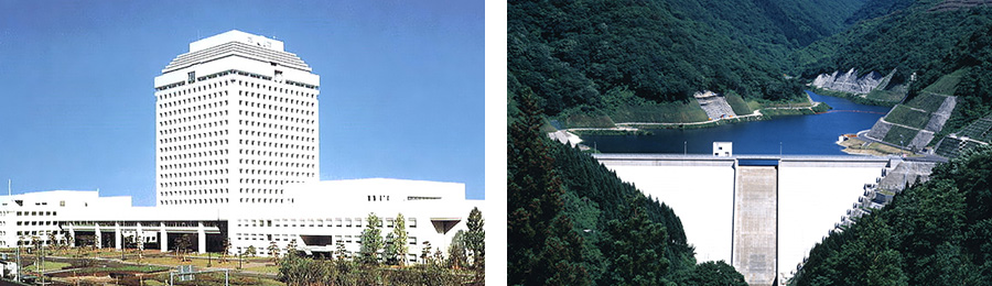 津川麒麟橋建設工事、新潟飛行場建設工事、新潟市庁舎建設工事など、街の発展にかかせない道路・橋・公共施設やインフラ整備に尽力してきました。